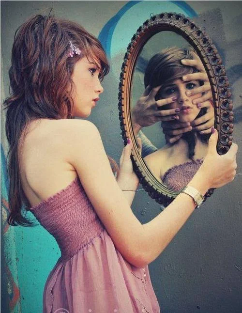 根据创意由老师引导拍摄系列人物和镜子的照片。课后自己再根据学到的拍摄技巧拍摄N组